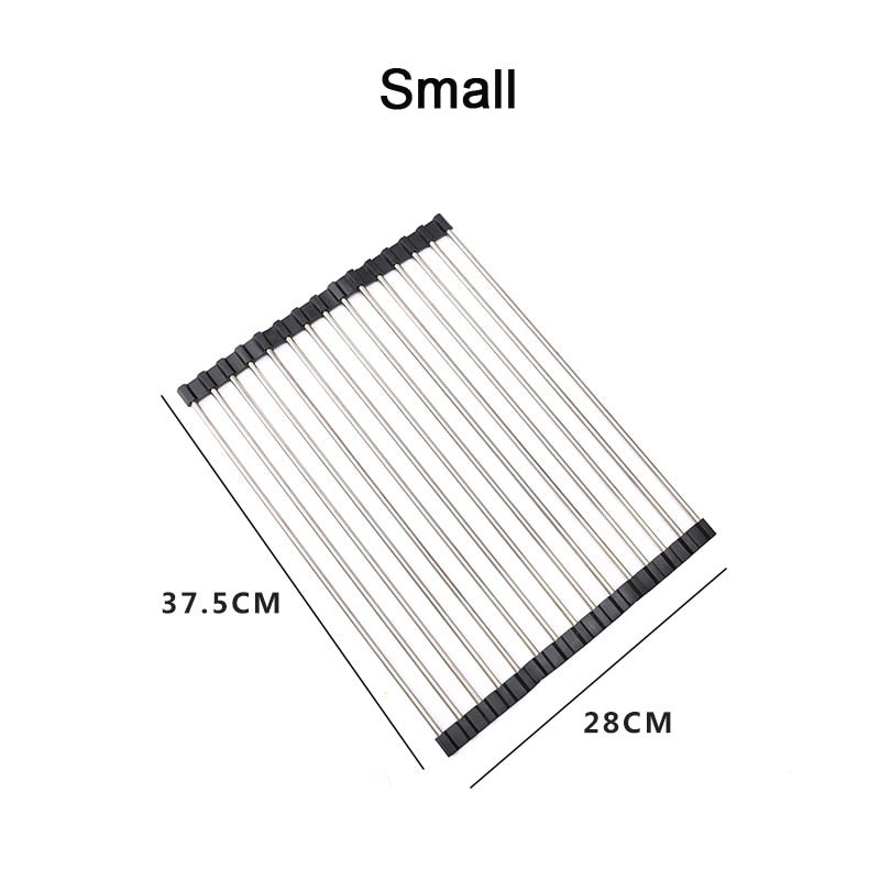 Basta estender o Escorredor Prático de Louça sobre qualquer pia de cozinha padrão e quando terminar, você pode simplesmente enrolá-lo de volta e guardá-lo no armário ou na gaveta, economizando espaço valioso no balcão.