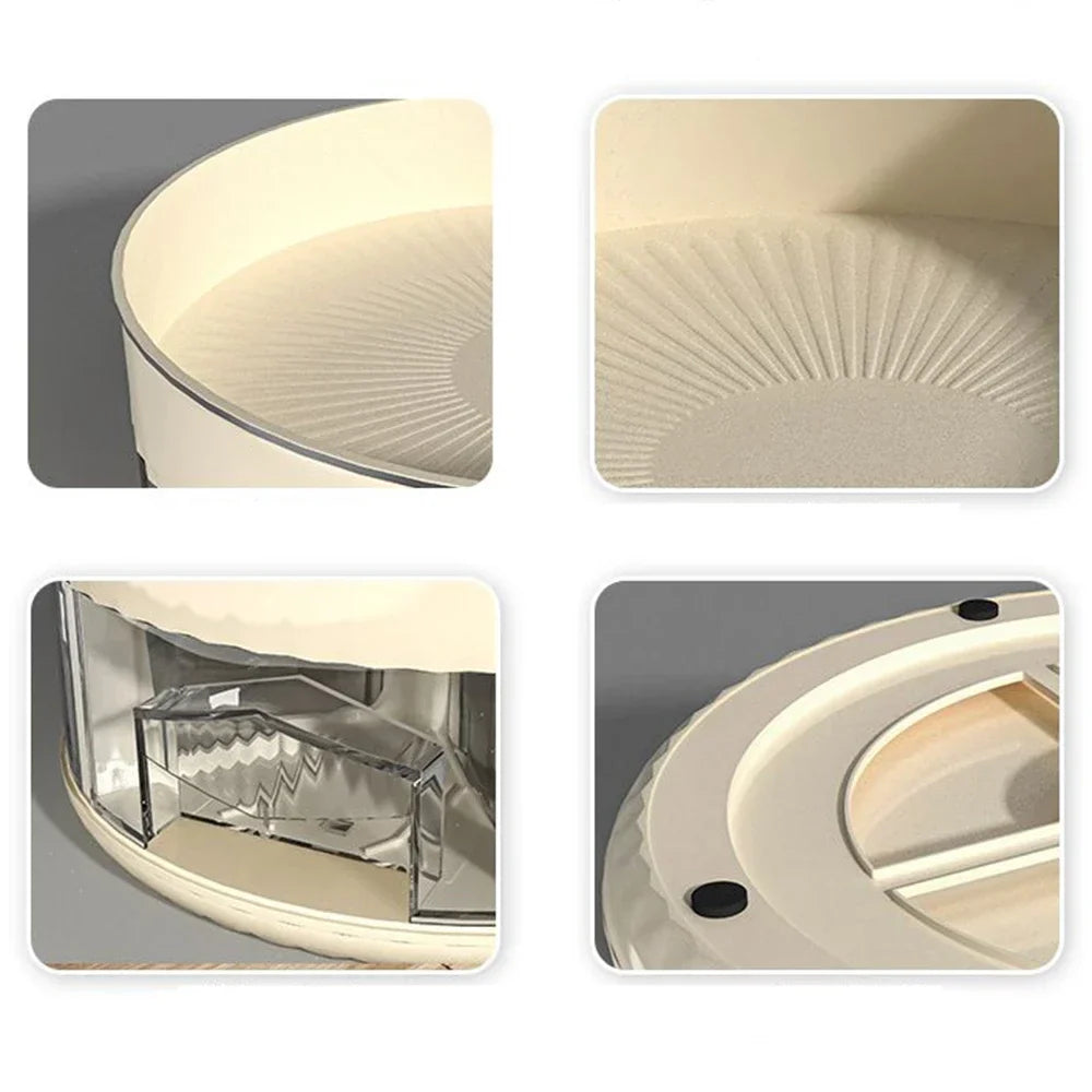 🔄 Gira 360 Graus: Graças ao seu design rotativo, você pode acessar facilmente todos os itens armazenados na bandeja, girando-a suavemente em qualquer direção.