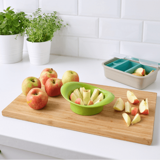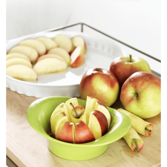 Já pensou nunca mais ter que gastar tempo fatiando maçãs, peras, tomates, e muito mais? E o melhor de tudo, além de fatiar em tamanhos exatamente iguais, remove também o centro que nunca é utilizado com as sementes!
