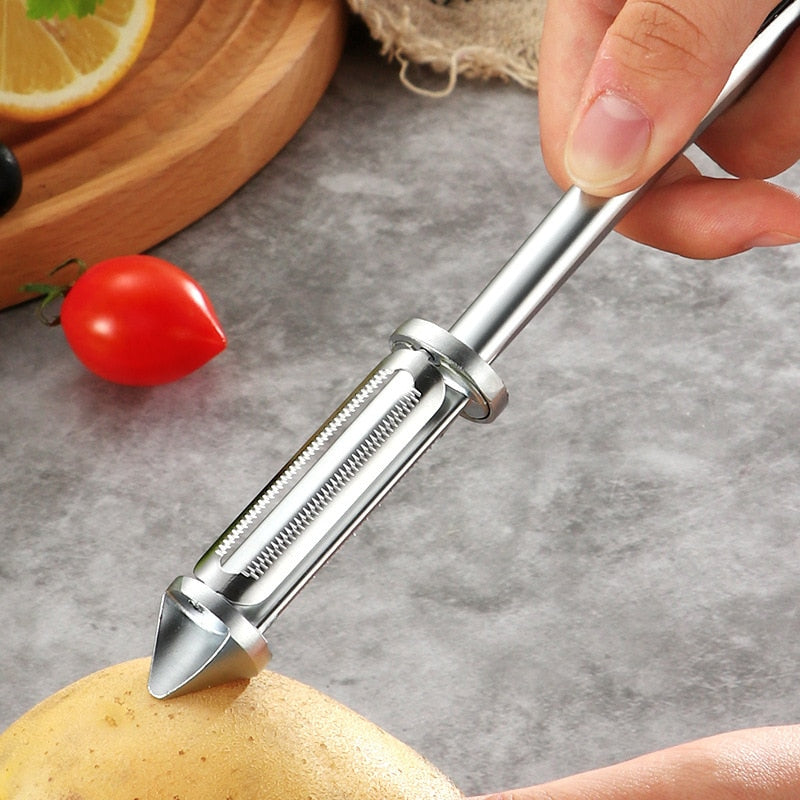 Estas lâminas duplas de aço inoxidável são ultra afiadas para uma descamação suave e sem esforço. Você pode facilmente mudar de descascar vegetais para cortar em juliana.