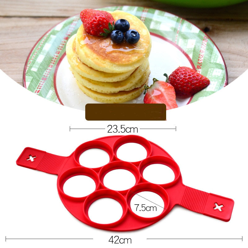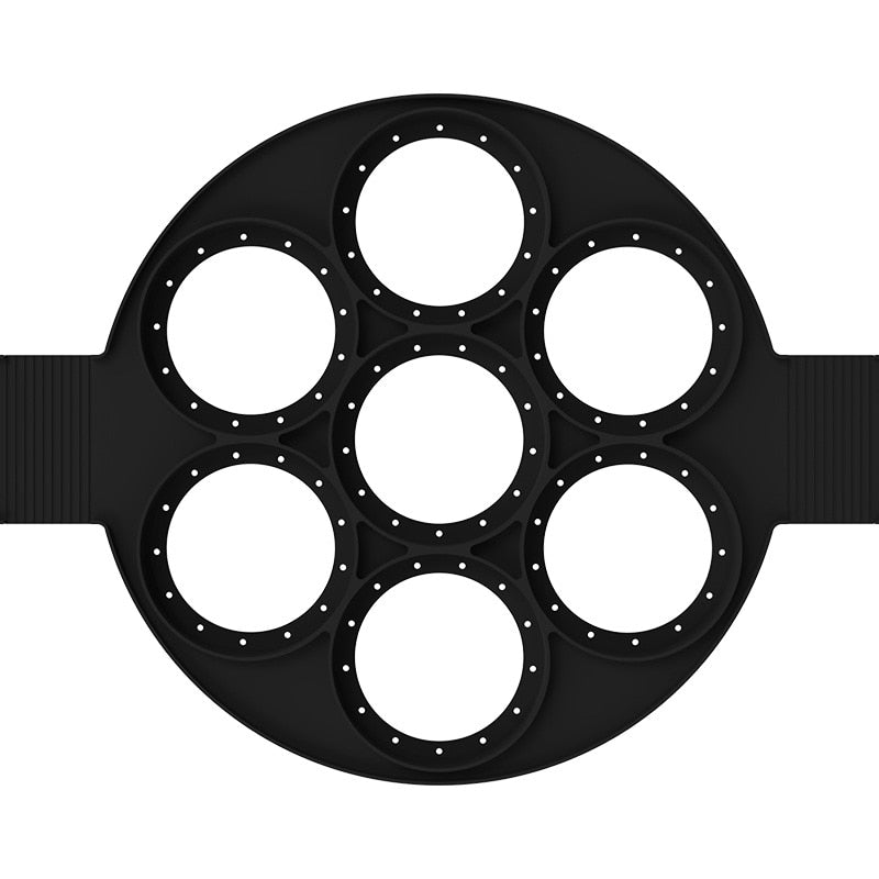 Forma Siliconada em Círculos reutilizável, não apenas para a família criar uma boa refeição, mas também para contribuir para o poder de proteção ambiental Este molde de panqueca antiaderente tem 7 anéis redondos, alimentos separados de cada anel com diâmetro de 3 polegadas, maneira rápida e fantástica de fazer panquecas de tamanho perfeito.