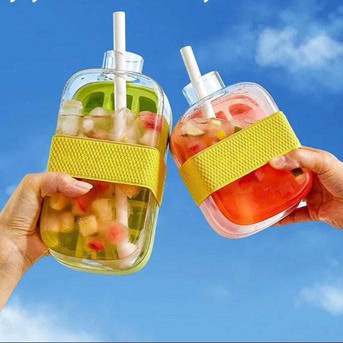 Perfeita para levar sucos, chás gelados, água saborizada ou drinks para qualquer lugar — praia, academia, escritório ou viagem.