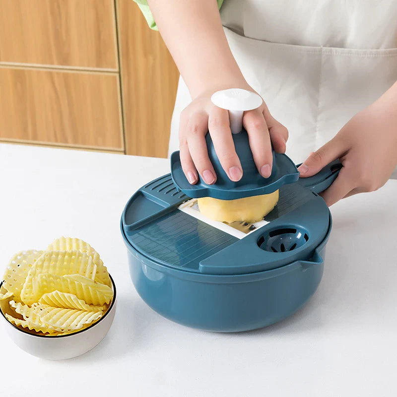 Este Cortador Prático Multiuso altamente eficiente possui diversas lâminas intercambiáveis para triturar, reticular, fatiar e picar!